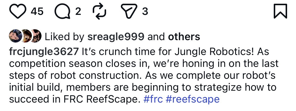 As a media member for Jungle Robotics, I managed social media, photography, and video content across two competitions, producing four animations, two contest videos, and all communications and outreach. I also designed merchandise and a coloring book to engage the team and community.