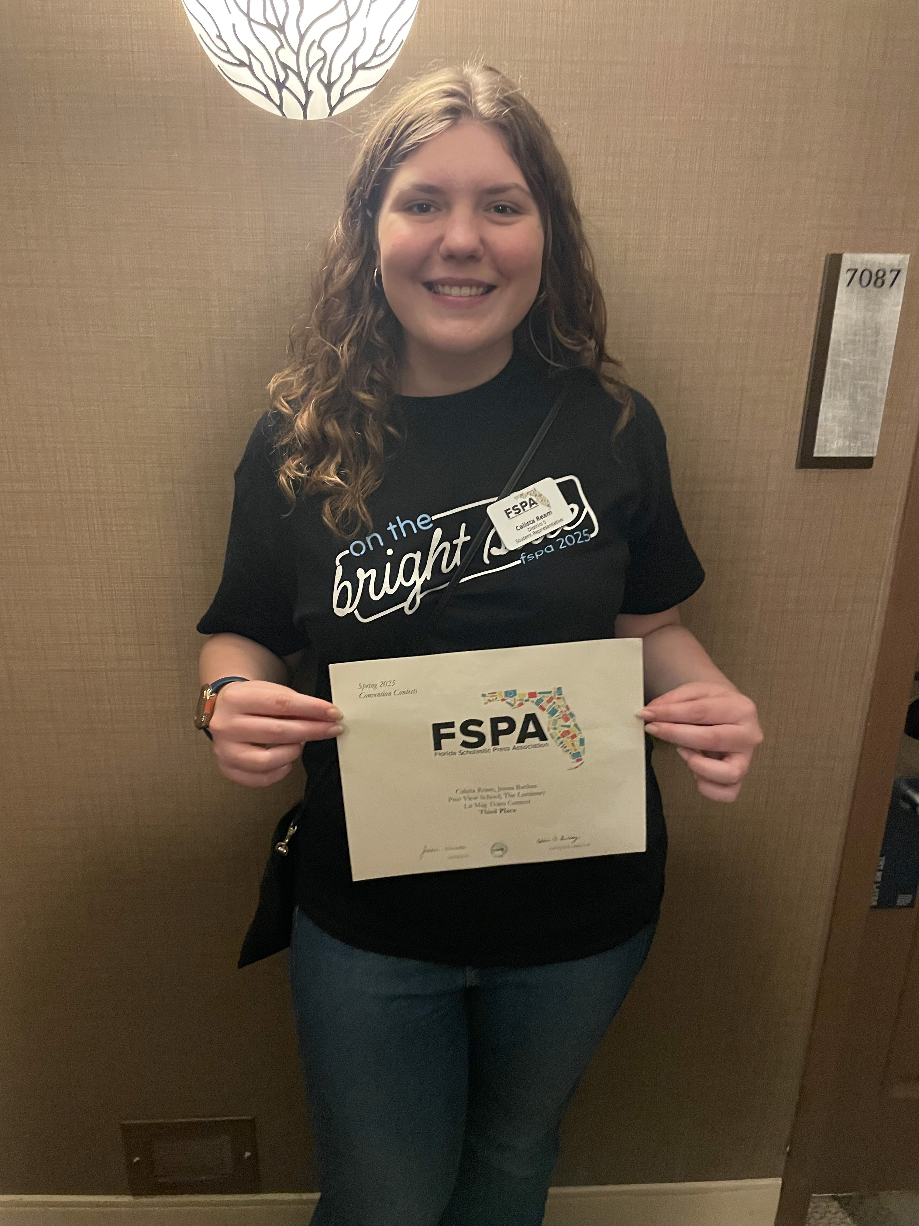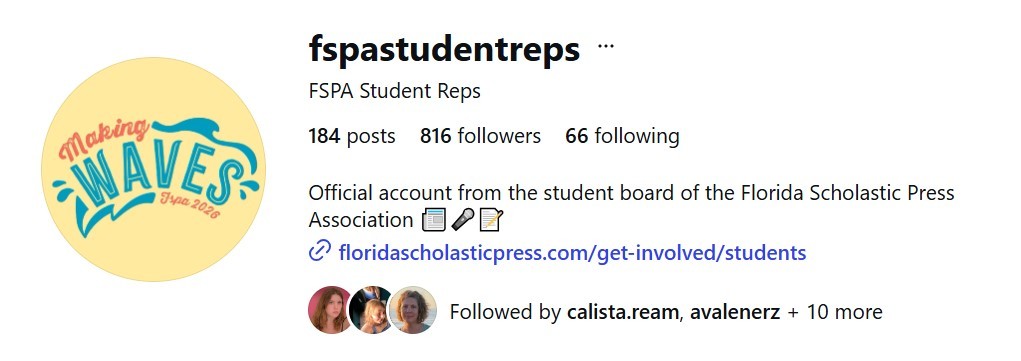 Elected as District 5 State Representative, I served as one of seven students on the FSPA Executive Board, representing 300+ journalism programs across Florida. I helped develop the theme and structure of a four-day, 1,500-attendee statewide convention and led roundtables to encourage active participation.